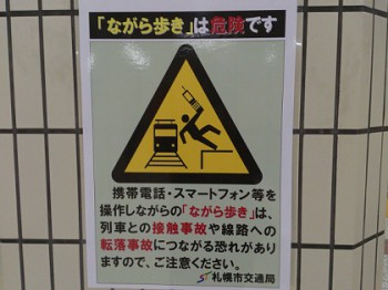 駅構内での歩きながらのメール操作は危険である。ホームから転落する危険、他の乗客と