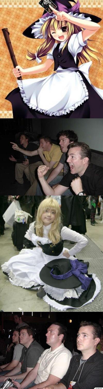 もともとは海外ゲームサイト「IGN」のネタ画像。二枚ともアメリカのゲームショーにて任天堂ブースでのリアクションである。盛り上がってる方は2004年「ゼルダの伝説 トワイライトプリンセス(Wii+GC)」発売の時。