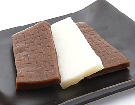 黒、白ともに三枚重ねになっており、はがして食べたいのだがいうことを聞かない。もちもちした食感にふんわりとした黒糖&はちみつのどこか懐かしい味。名古屋のJR高島屋でも売ってたな。うちのおじいちゃんがよく食べてた。家康か。