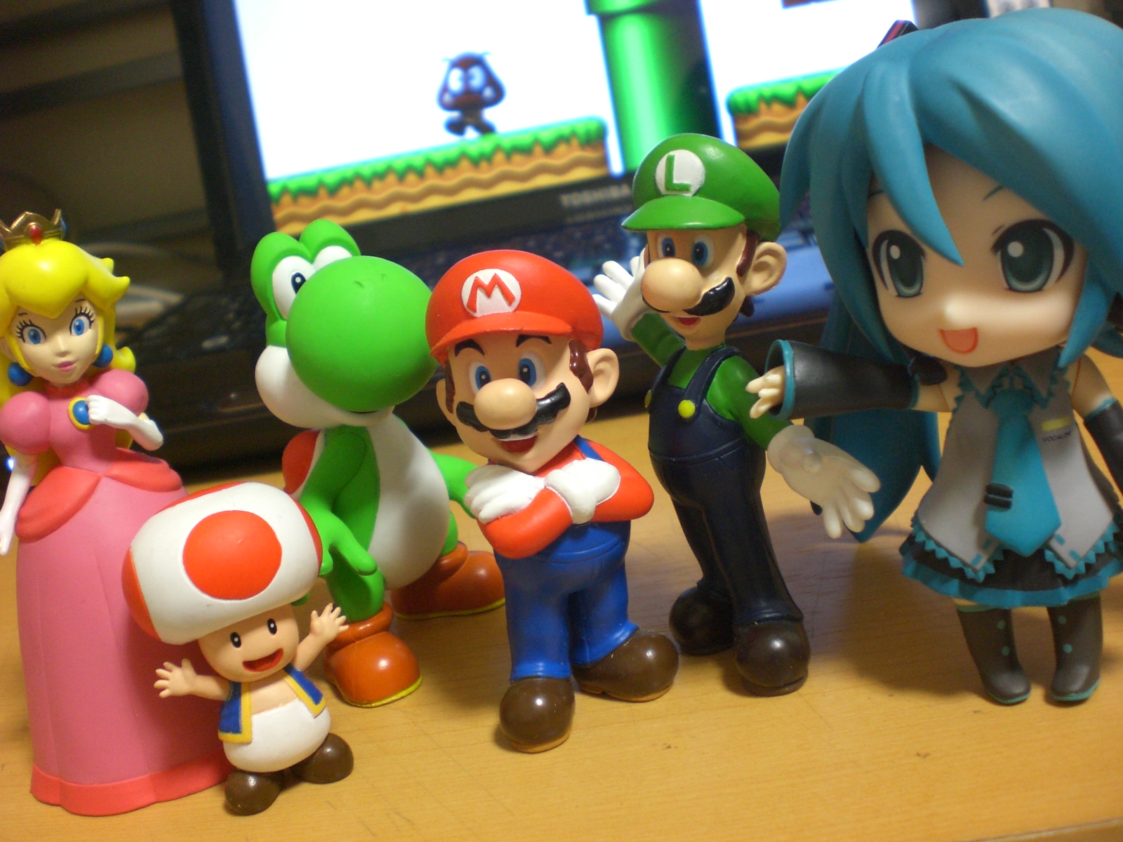 あちらを向くマリオたち。嗚呼、俺は大人になった。幼いころさんざん遊んだマリオたちのことを忘れてしまうのだろうか。マリオたちも次の世代の子のもとへ旅立ってしまうのだろうか・・・などと考えていると切ない。