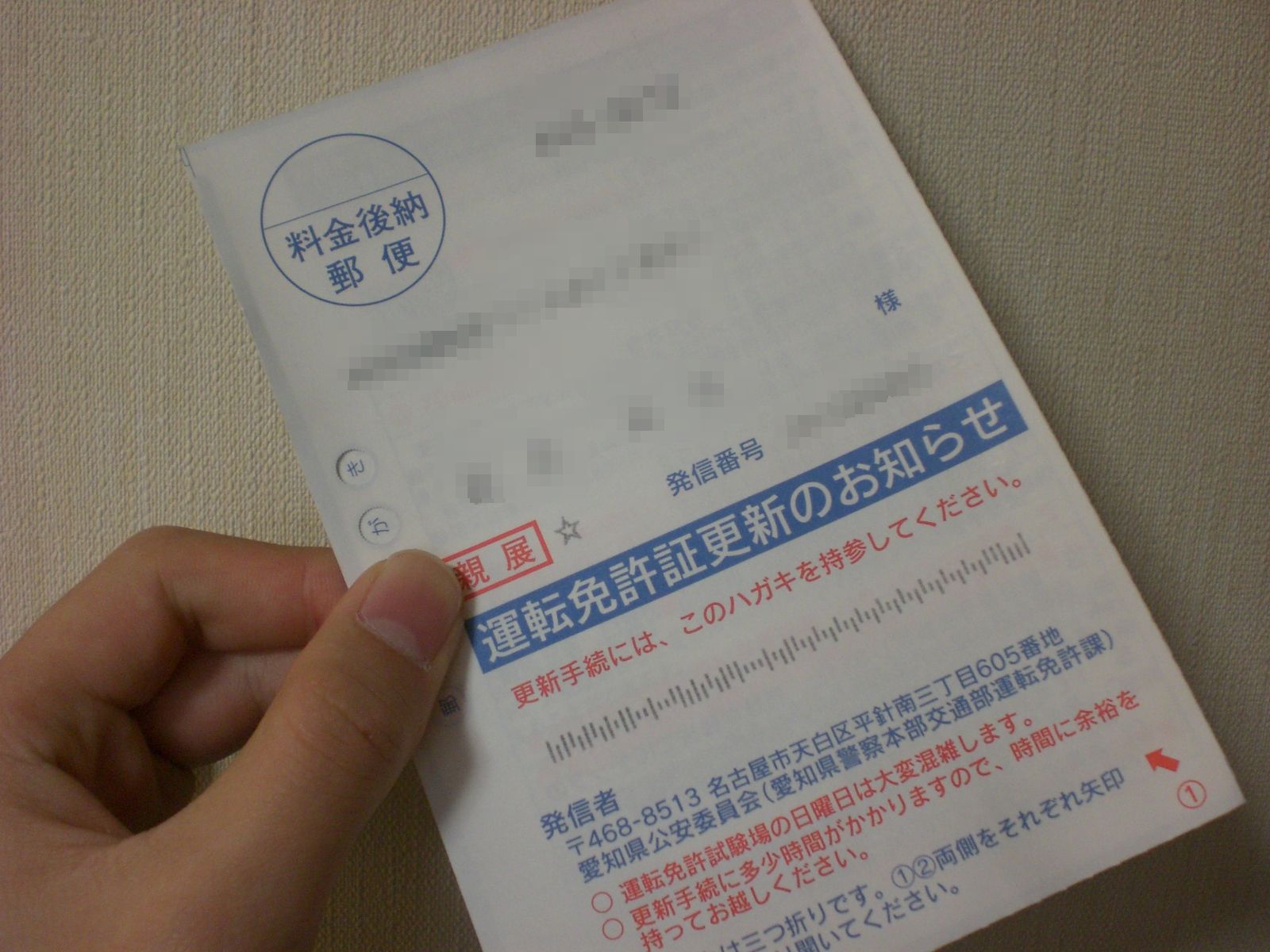 ハガキがきてたので免許の更新へ。