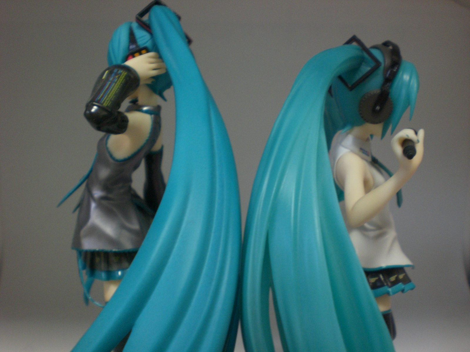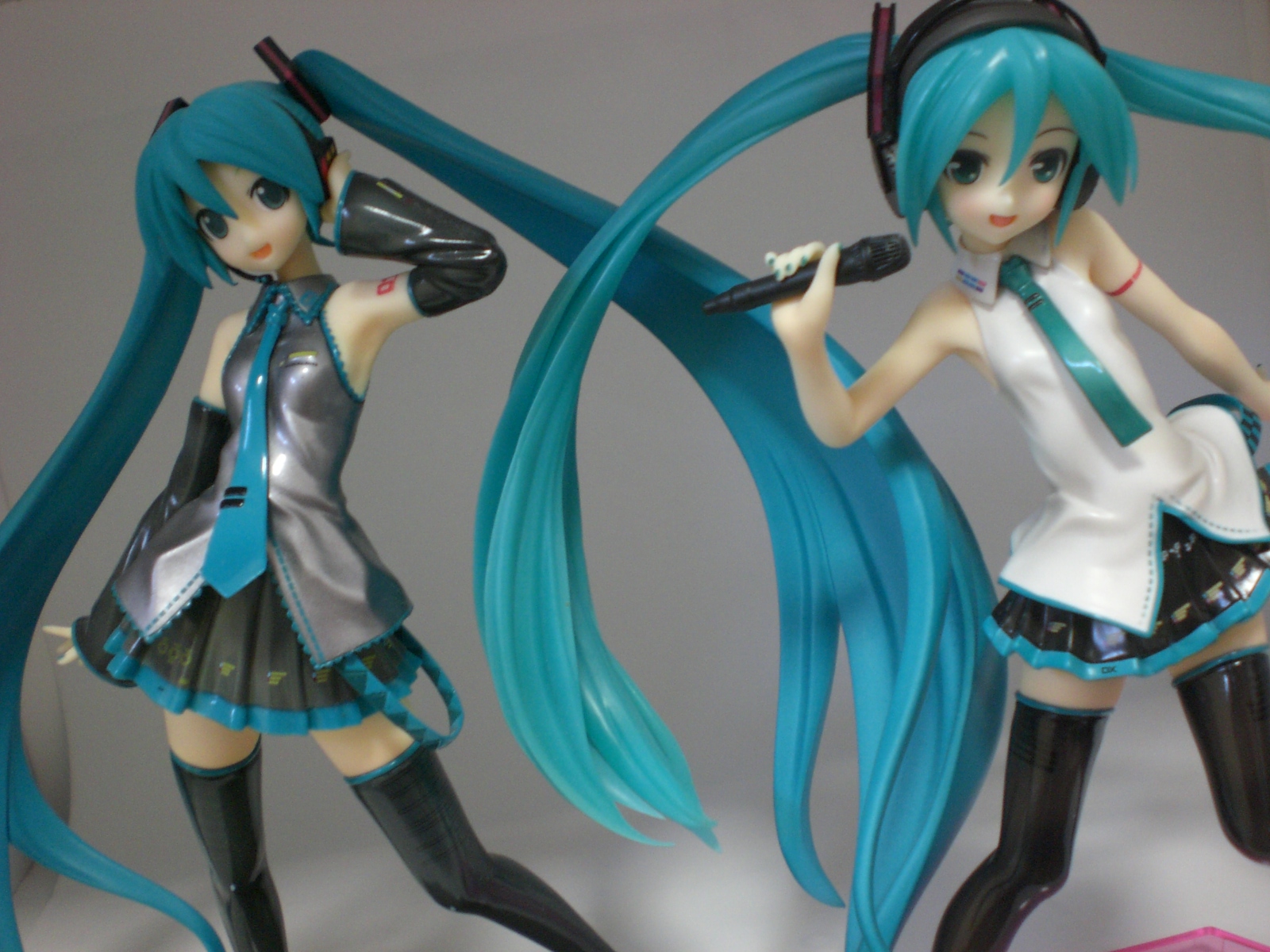 二人の歌姫、圧巻のツインテール。写真では見えないが、Lat式のほうには毛先にかけてクリア(透明)っぽくなっている。