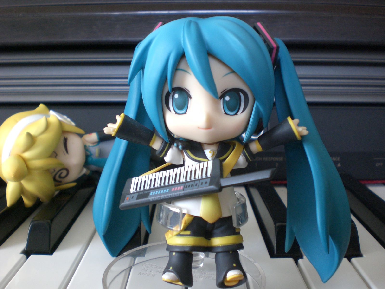 ねんどろいど初音ミク。この商品、何度再販してもあっという間に完売御礼、定価で手に入れるには神経のいるフィギュアだったりする。それだけ人気なんだな。大きさはおよそ10cmほどで掌に収まるサイズ。