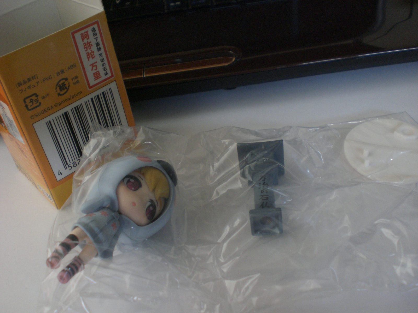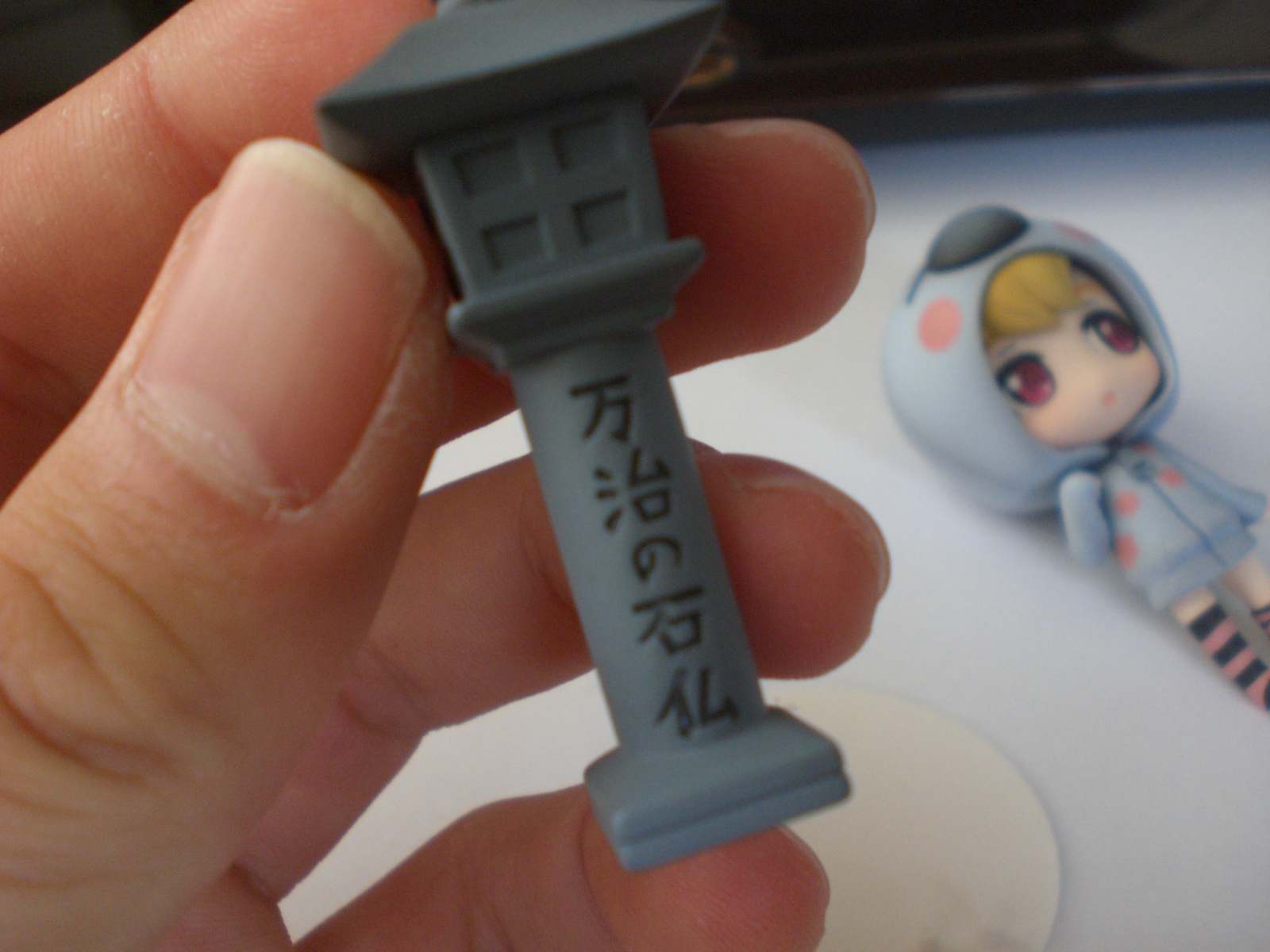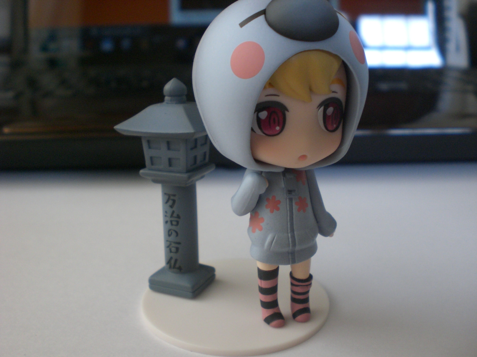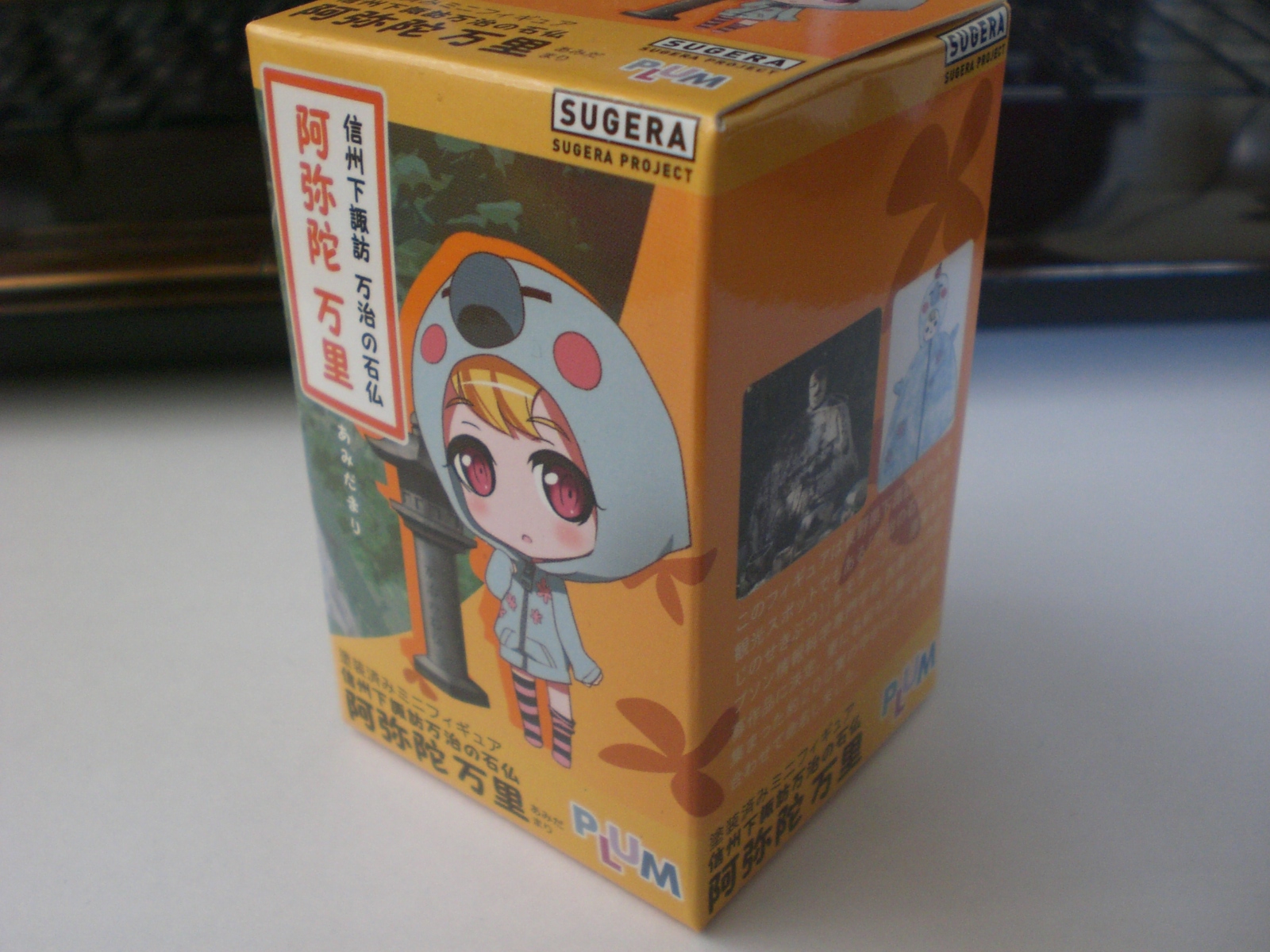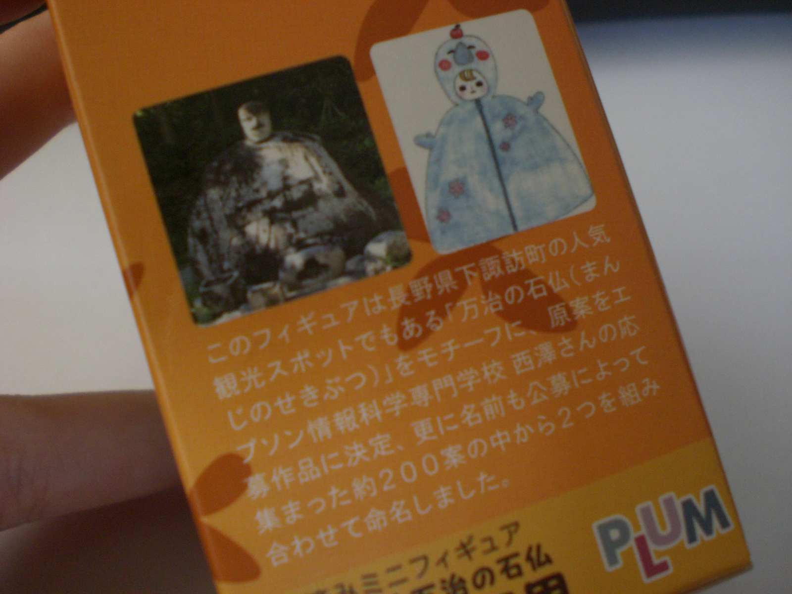 「このフィギュアは長野県下諏訪町の人気観光スポットでもある『万治の石仏(まんじのせきぶつ)』をモチーフに、原案をエプソン情報科学専門学校 西澤さんの応募作品に決定、更に名前も公募によって集まった約200案の中から2つを組み合わせて命名しました。」