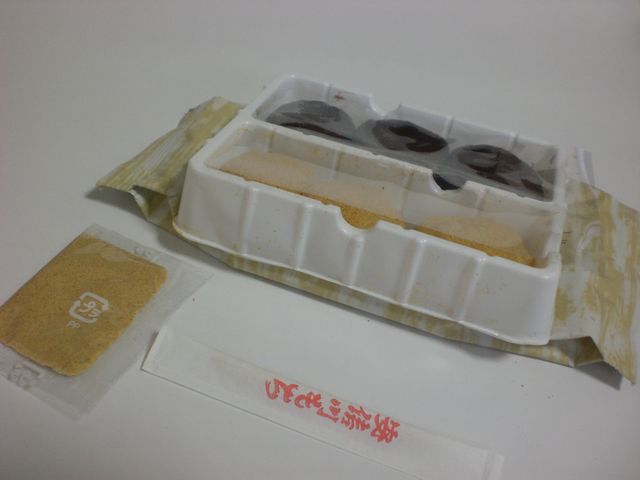 中身はこしあん餅ときなこ餅の二種類が3個ずつ。きな粉は自分でふりかけて食べるようだ。
