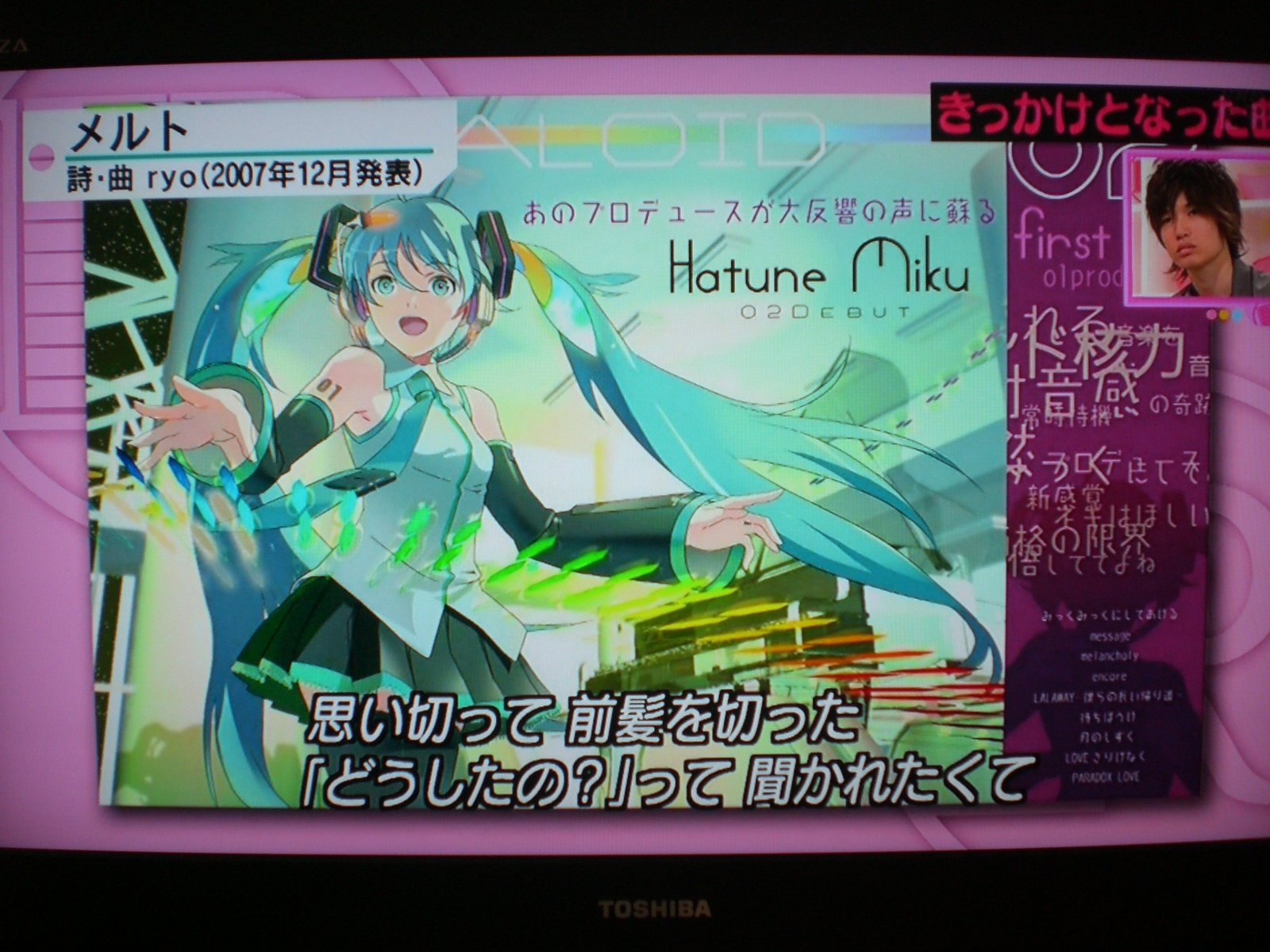 以上、30分程の番組ながらしっかりと初音ミクが伝わる細かさ。大学の友人にメールしたら、「え?そんなんあったの!?今度やるときは教えてくれ」とな。また取り上げて欲しいね。